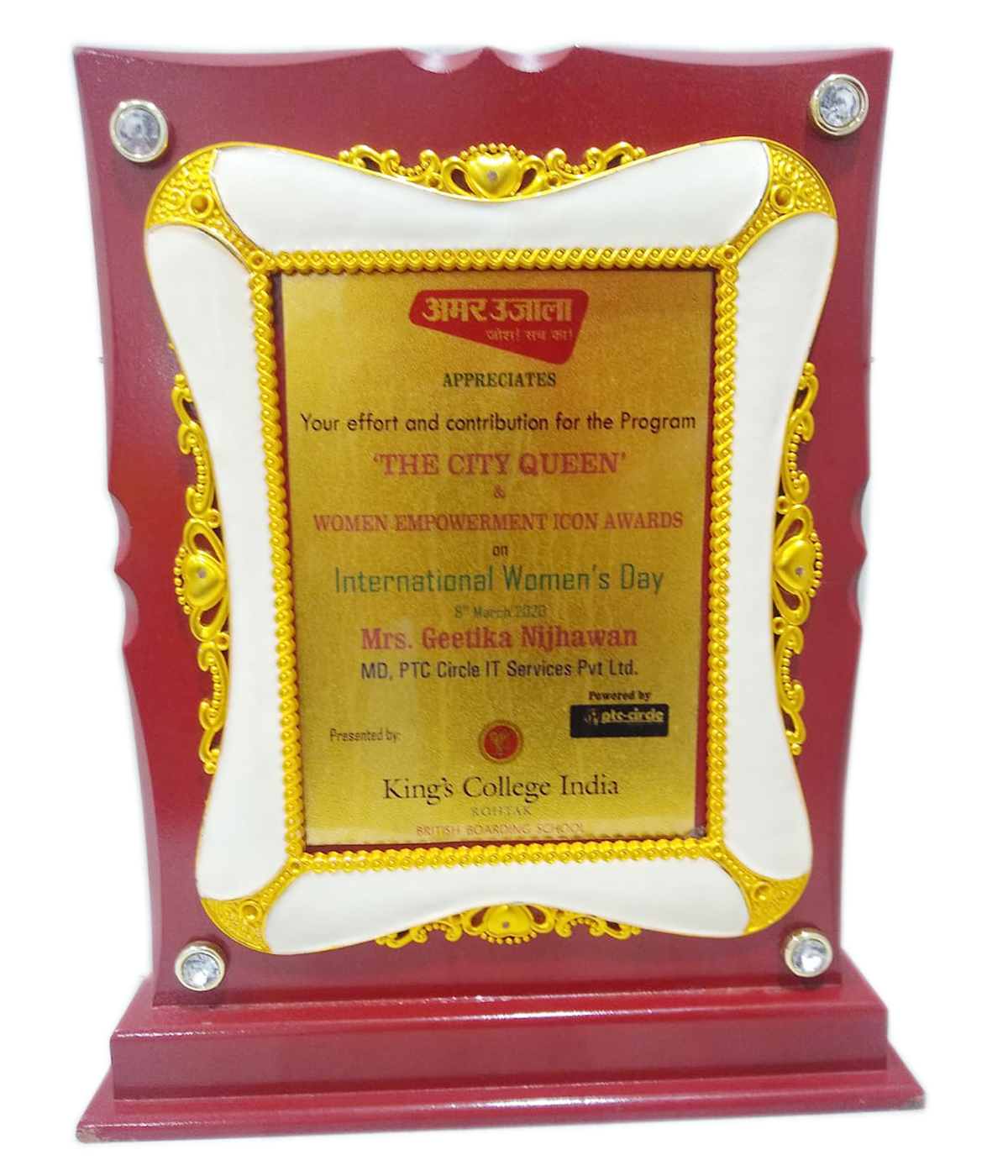 Mrs. Geetika Nijhawan ( MD, PTC Circle IT Services PVT LTD ) received “ The City Queen” & Women Empowerment icon award on International Women Day Held at Kings College Rohtak.