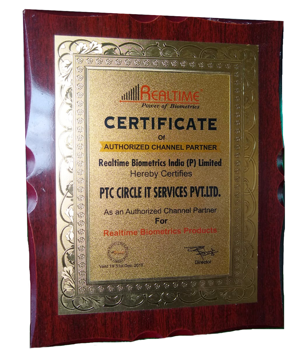 PTC Circle IT Services PVT LTD, Certified as an Authorized Channel Partner for Realtime Biometrics Products.